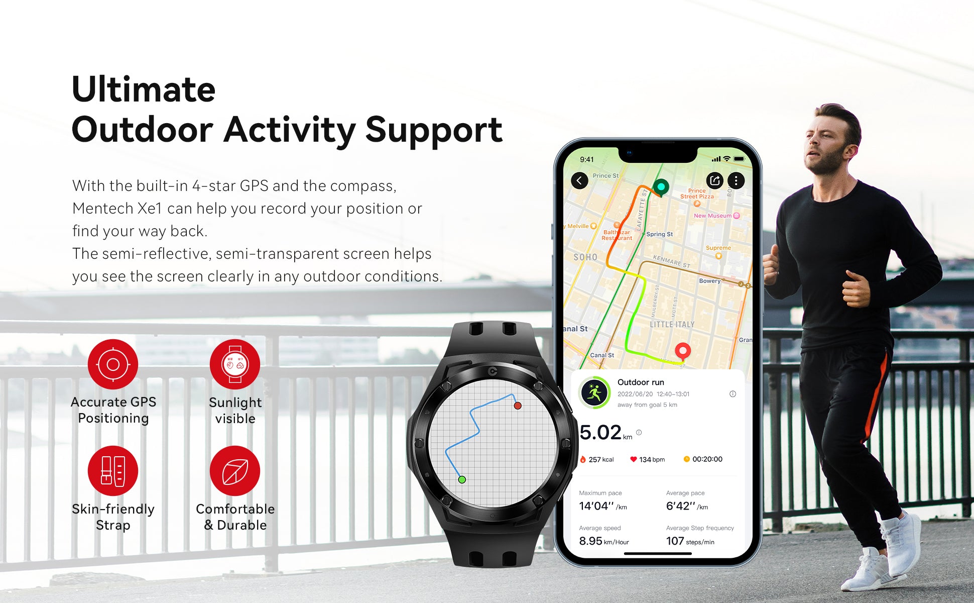 Mentech Xe1 weighs only 66g, making it suitable for various sports and outdoor activities such as running, cycling, climbing, and hiking. Numerous adventures await.